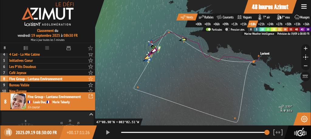 La nuit a été aussi studieuse qu’active à bord de l’Imoca Fives Group – Lantana Environnement, pour Louis Duc et Marie Tabarly, engagés sur le Défi Azimut.