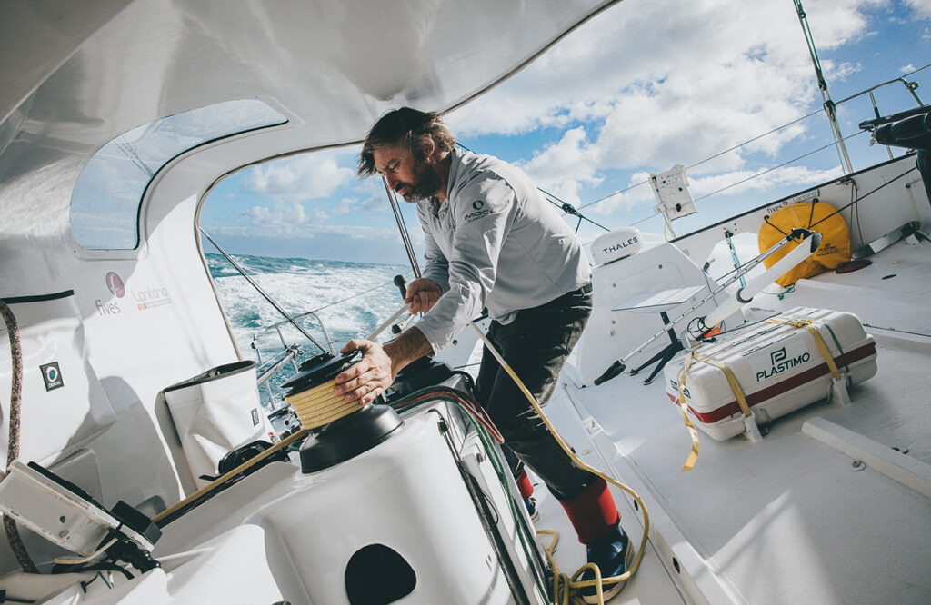 Louis Duc : « Les températures commencent à monter, il y a des sargasses, des poissons volants : on est bel et bien dans les alizés ! Le vent commence à se renforcer, ça c’est une bonne nouvelle ! Les arrivées des premiers, ça agace un peu, forcément : on a envie d’arriver au plus vite ! »