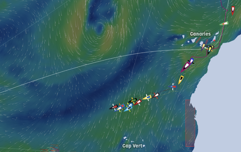 Nous les avions laissés vendredi au large de Gibraltar… ils tracent ce lundi matin au sud des Canaries ! Le près, c’est fini. Place au portant dans les alizés, même si quelques pièges météo se profilent quand même à l’horizon et c’est tant mieux, car ils représentent autant d’opportunités tactiques que Louis et Masa ne manqueront pas d’exploiter, jusqu’à leur arrivée aux Antilles…